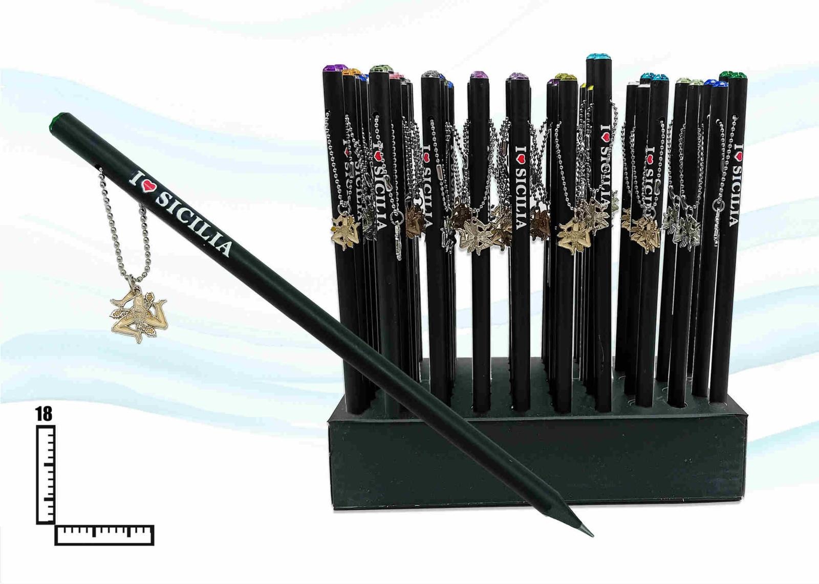 MATITA NERA C/STRASS E PENDENTE TRINACRIA SICILIA