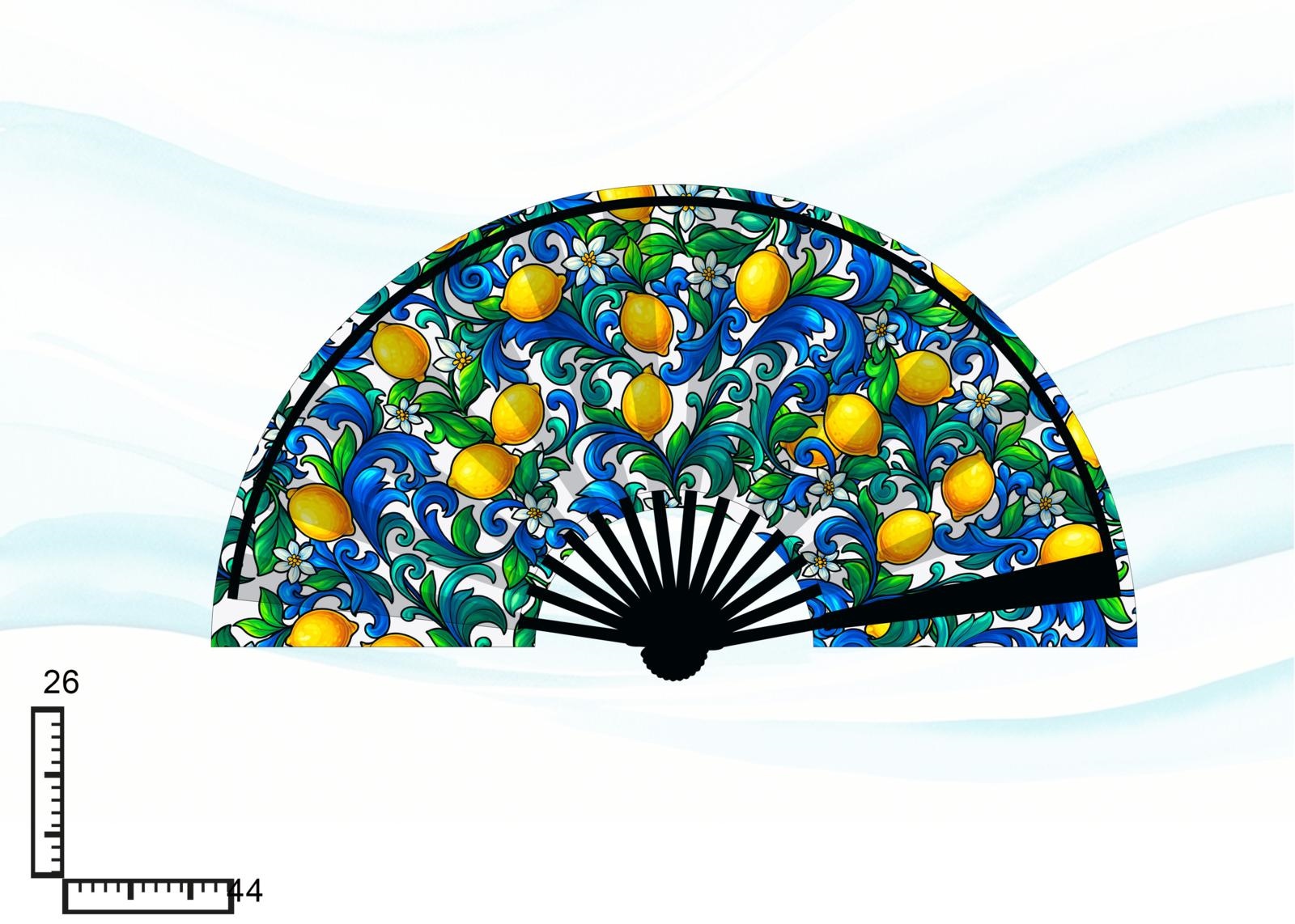 VENTAGLIO PLASTICA DOPPIA STAMPA LIMONI BLU ISCHIA